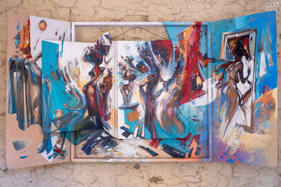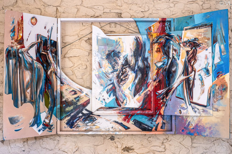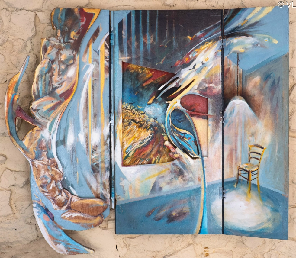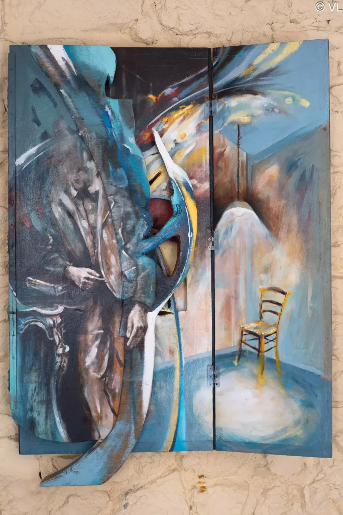 Pour accéder à son atelier, il faut d’abord franchir quelques étapes. Gravir des marches et découvrir un magnifique jardin en restanques, au cœur de Marseille. Ouvrir un retable qui révèle plusieurs tableaux pour découvrir un hommage à Théo Van Gogh. Ensuite le parcours continue, au détour d’un escalier en spirale… et à chaque détour, de nouvelles œuvres majestueuses nous attirent.