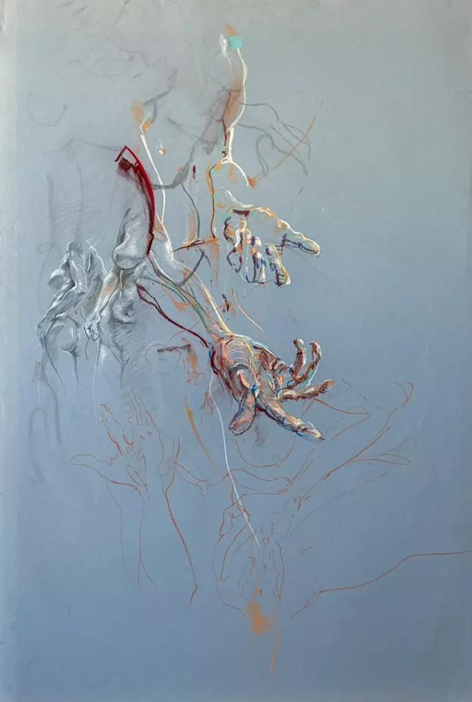Mais son schéma créateur reste le même : » je commence par dessiner le corps, je n’en finis pas de le découvrir dans sa puissance, sa tension, sa vulnérabilité, et de voir ce qu’il raconte. Soumis à des forces inconscientes, les corps sont sublimés, leur histoire est inscrite dans leurs postures, leurs gestes, leur marque du temps, leurs reflets dans des miroirs toujours trompeurs. »