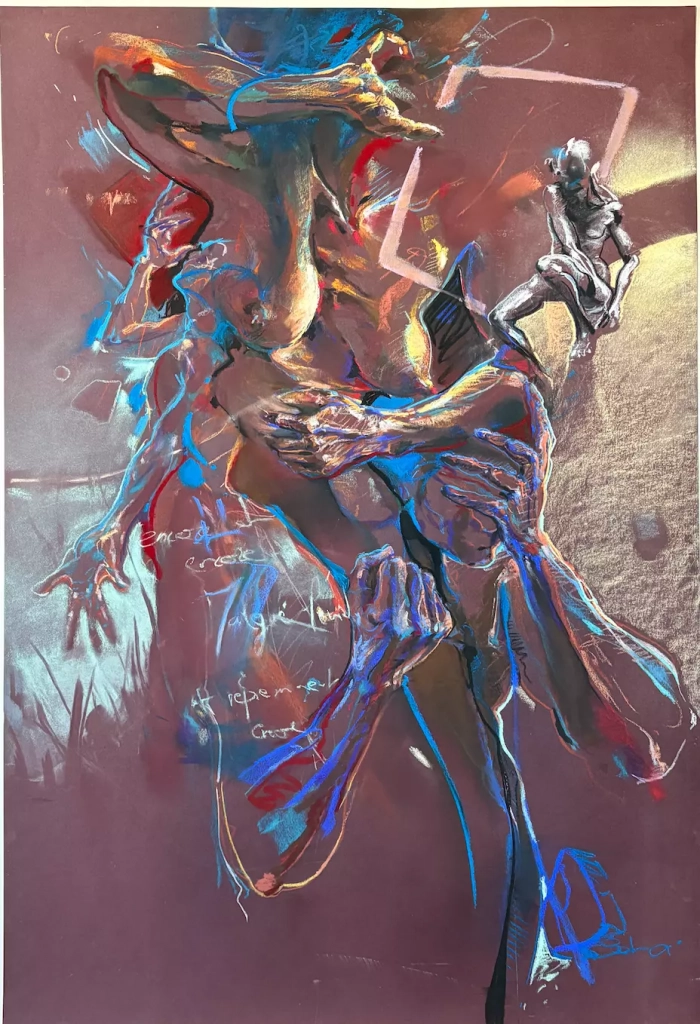 « Mon parcours artistique est une quête incessante de l’exploration des fragilités et des désirs humains. Chaque œuvre est une tentative pour capturer l’essence de l’instant, transcender les apparences pour révéler les profondeurs de l’âme. La peinture c‘est pour moi, le miroir qui reflète non seulement ce que nous voyons, mais aussi ce que nous ressentons et ce que nous sommes. Elle est un acte de rébellion, un appel à l’autonomie et à la conscience. L’art est un voyage sans fin, une danse entre la maîtrise technique et l’intuition, entre le contrôle et l’accident.