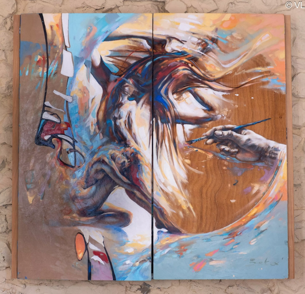 Il nous rappelle que nous sommes des êtres en perpétuelle évolution, toujours en quête de sens et de beauté. Que ce soit à travers la musique, la littérature, ou la peinture. L’art nous offre des moments de grâce, des instants où nous pouvons accéder à notre vérité et nous reconnecter à quelque chose de plus grand. Aujourd’hui, je continue à explorer ces thèmes. Chaque tableau est une plongée dans l’inconnu, une tentative de saisir l’insaisissable. Et pourtant, l’image reste la maîtresse absolue du monde et ce depuis que nous avons commencé à graver les cavernes. »
