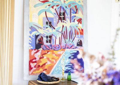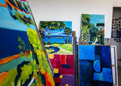Ses toiles, oscillant entre abstraction et figuration poétique, traduisent une quête d’harmonie et portent en elles le souffle de la mer, la fluidité des éléments et une vitalité communicative.