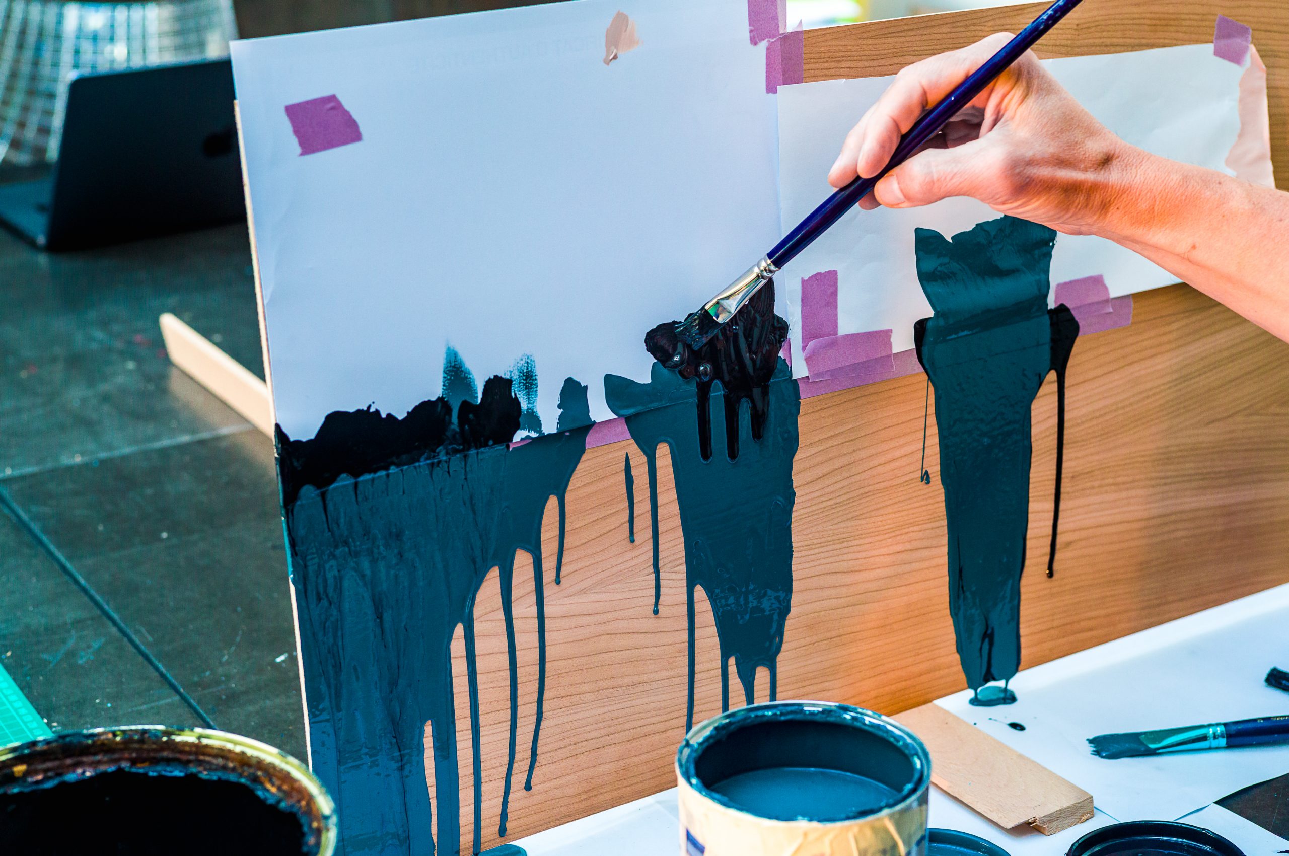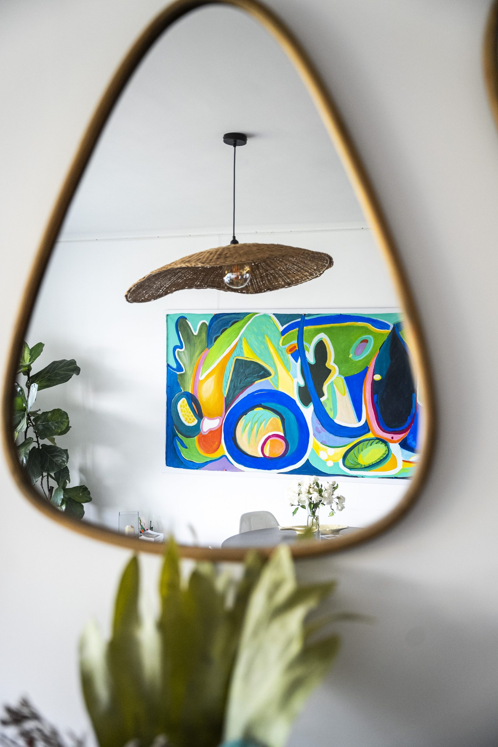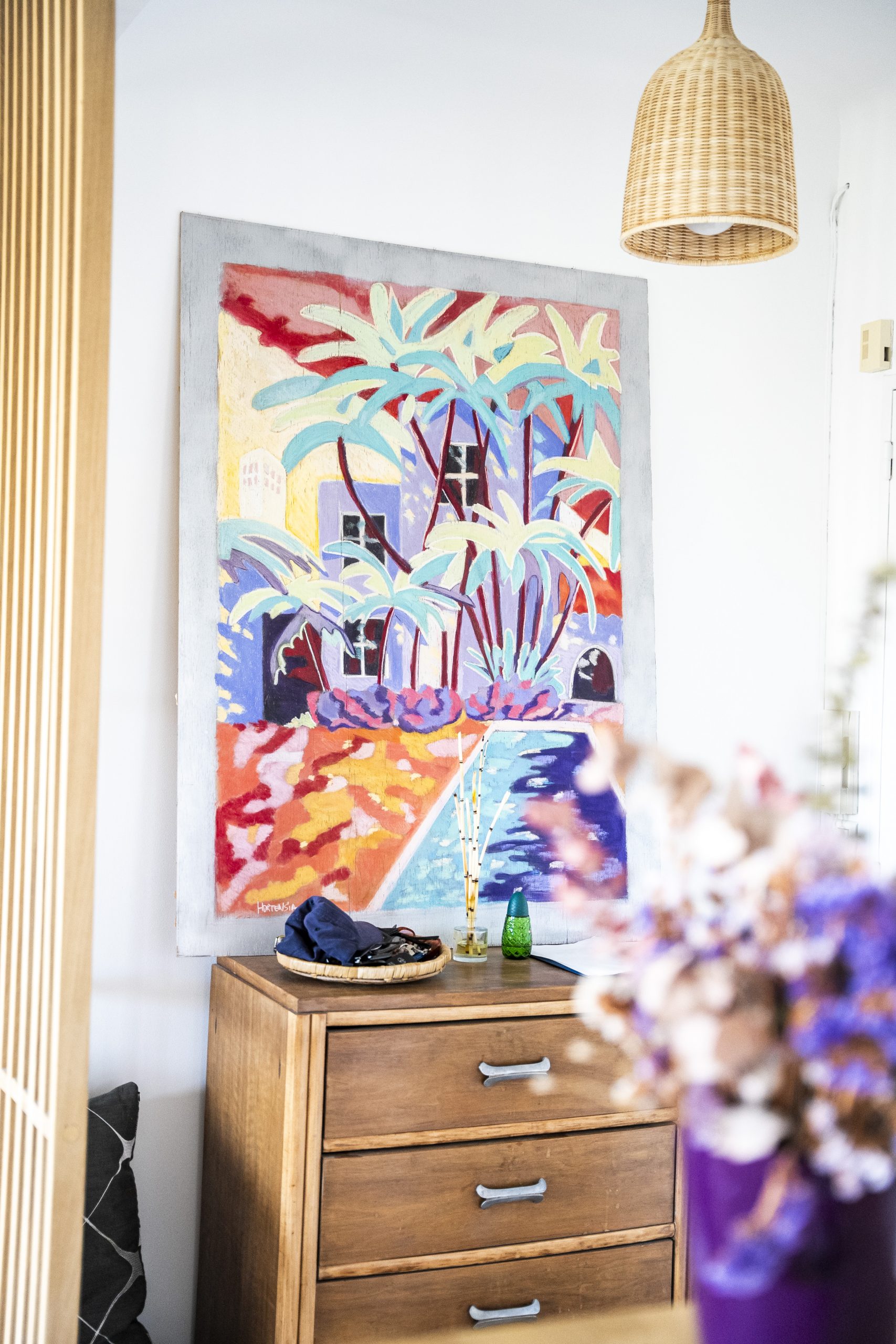 Formée entre Paris, Caen et les États-Unis, elle a développé une écriture picturale intuitive où spontanéité et raffinement se rejoignent.